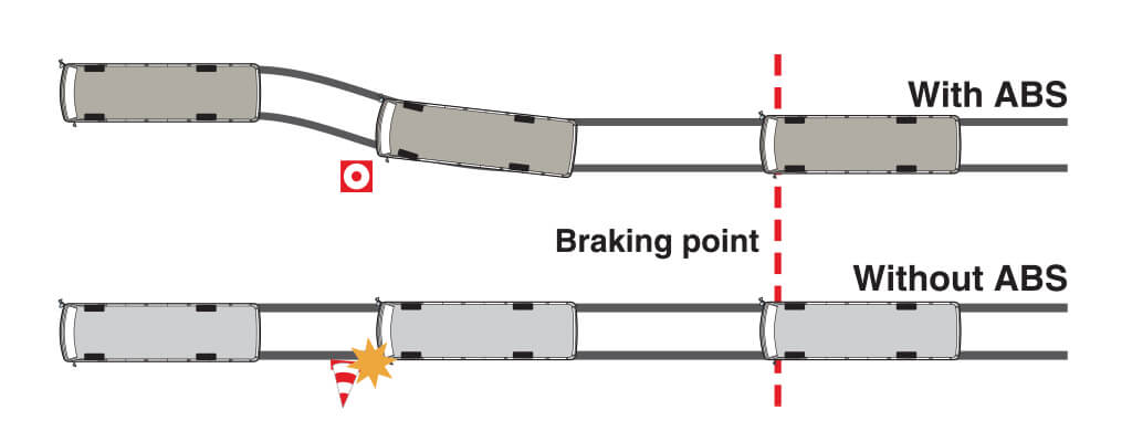 ABS helps to prevent the wheels from locking up on slippery roads, contributing to stable steering control.